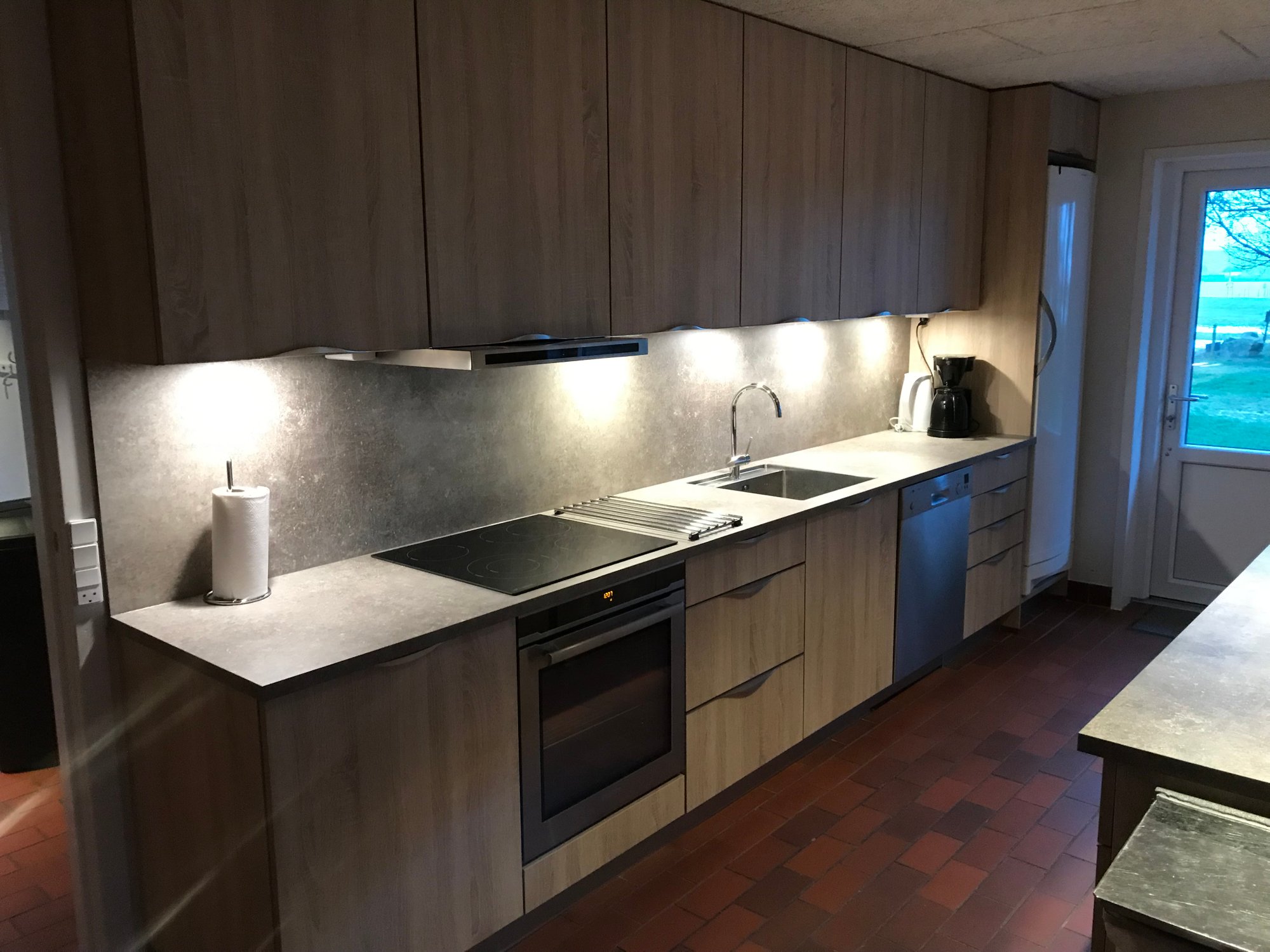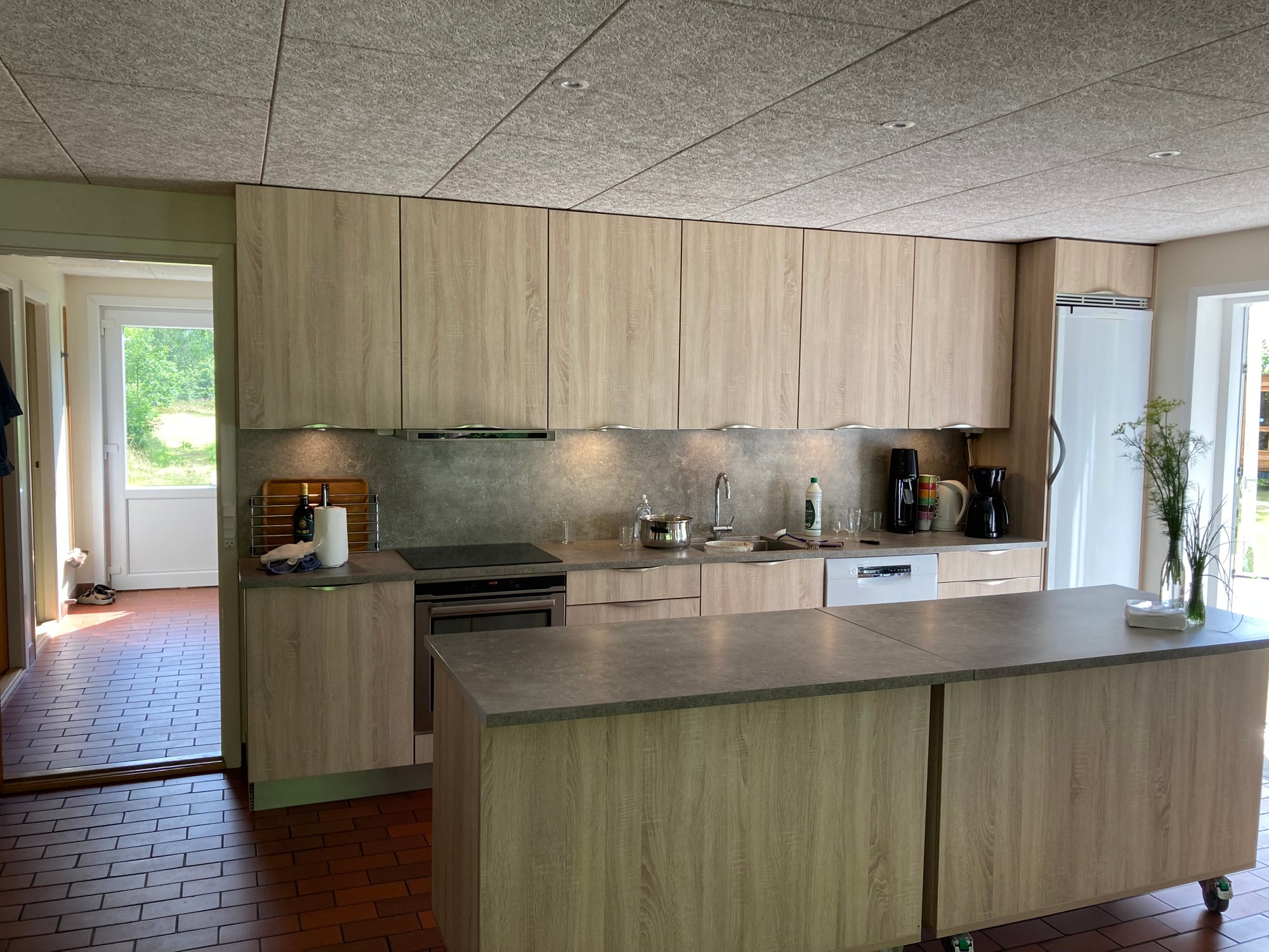 Stort køkken-alrum med plads til op til 30 personer samt en rummelig havestue.